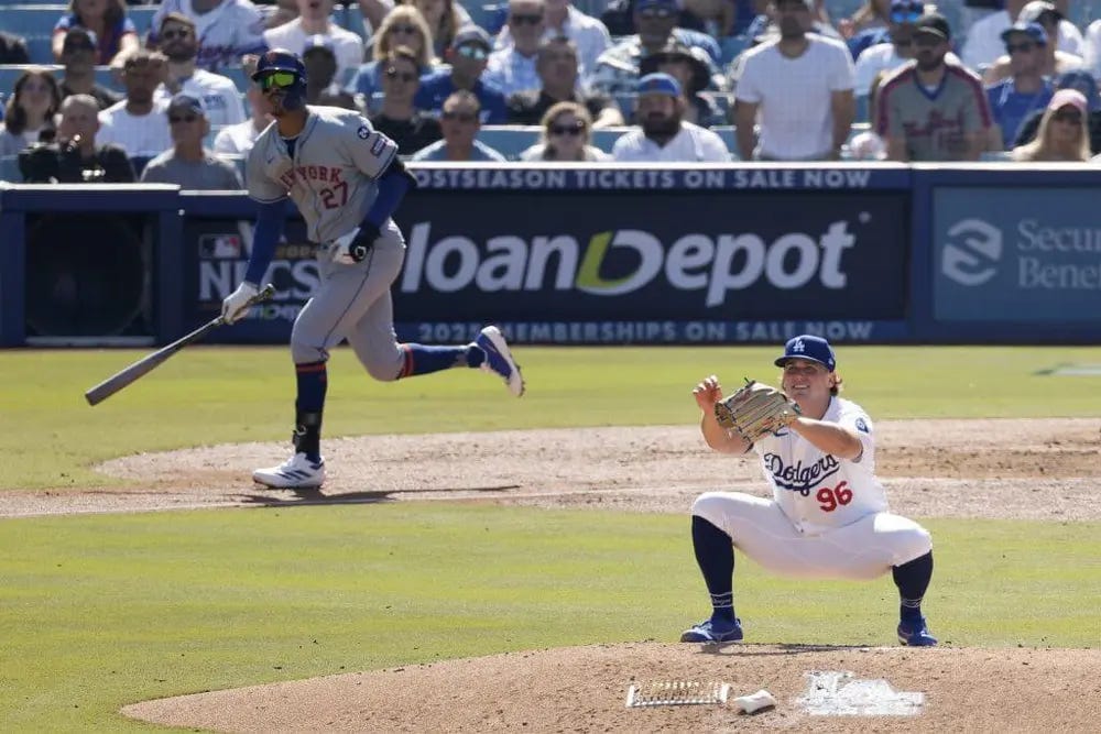 If you were looking for a sweep, you’ve come to the wrong place. And by place, I mean baseball. And sports. And Los Angeles, where the Dodgers won the first game of the 2024 National League Championship Series Sunday, 9-0, and the Mets took Gam…